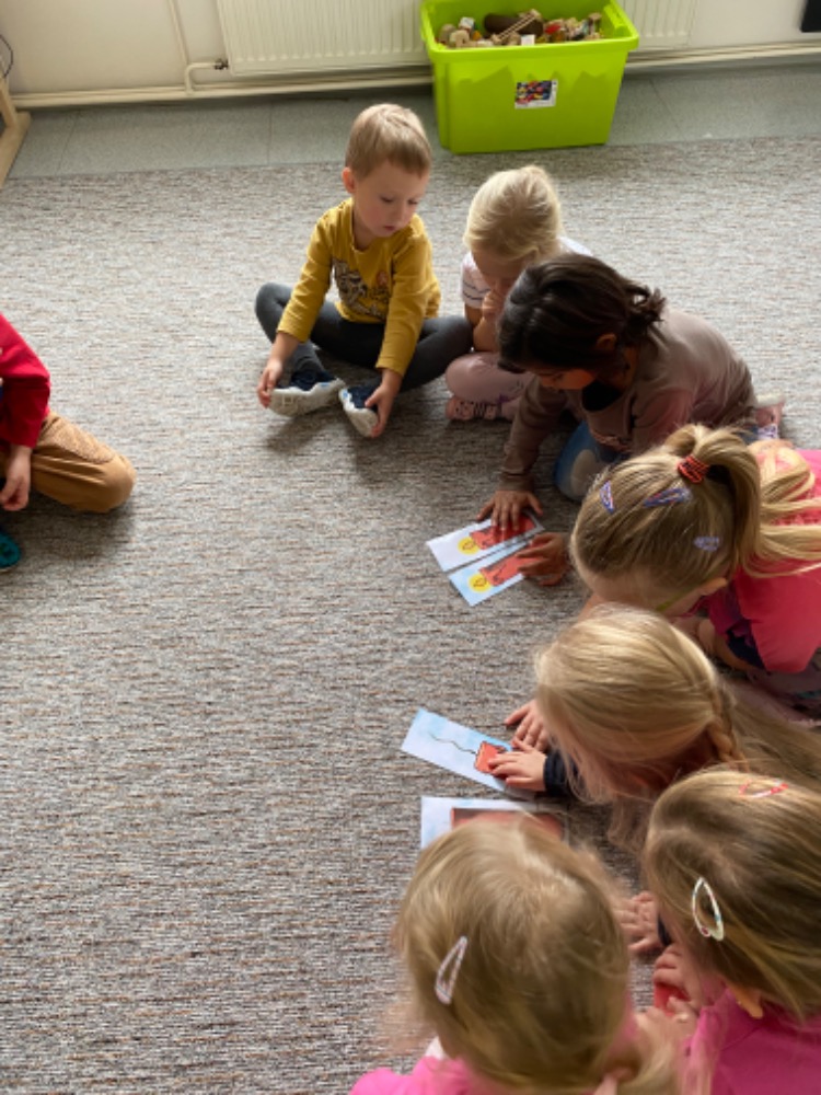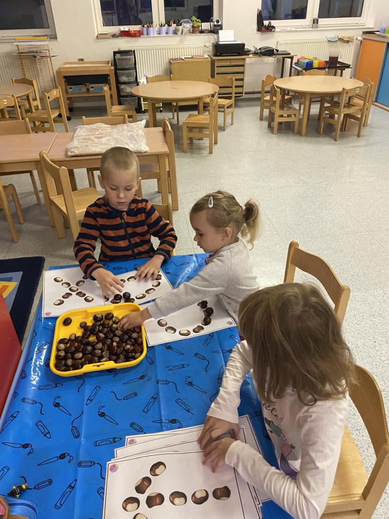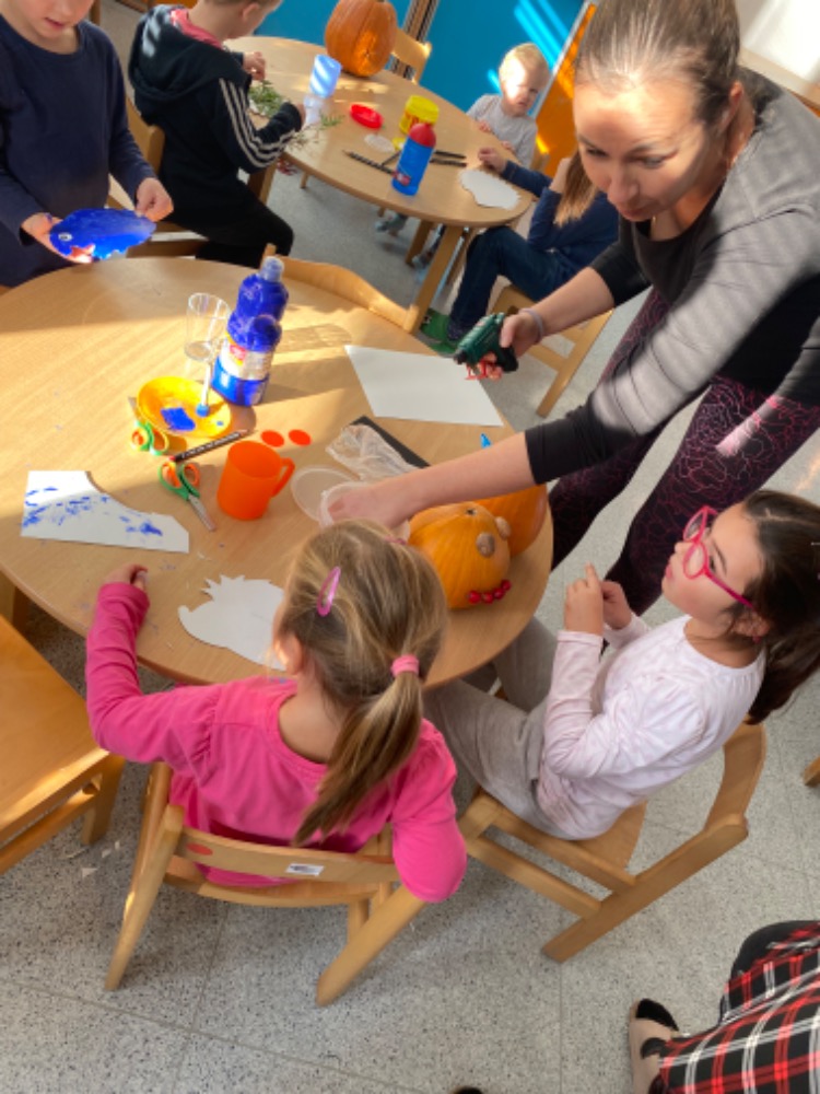 V říjnu jsme si s dětmi povídali o ptácích, kteří odlétají do teplých krajin. Dále se děti seznámily s aktivitami, které mohou dělat na podzim, jako je pouštění draka. Nakonec měsíce však nemohlo chybět téma spojené s "Dušičkami" a "Halloweenem".
