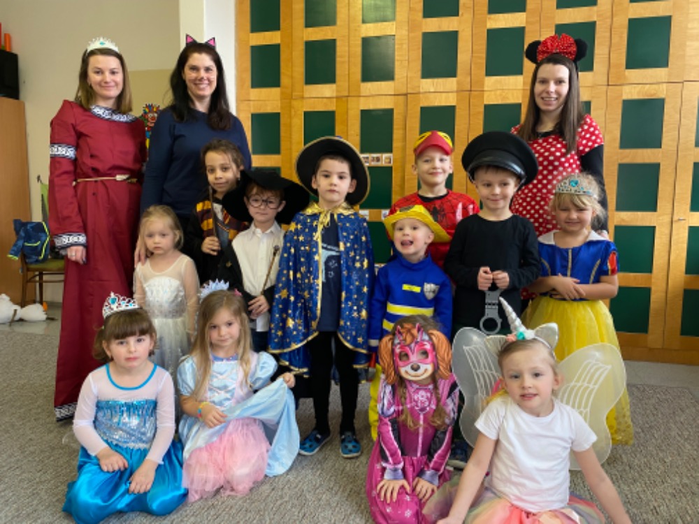 Měsíc únor děti zahájily tématem "Kniha". Dále jsme si povídali o pohádkách a o Masopustu, který byl zakončen karnevalem. Na konci měsíce jsme se zajímali o zuby, kdy se do MŠ přijely podívat i dentální hygienistky, aby naučily děti čistit zoubky.
