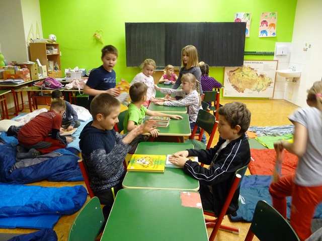 Opět jsme se sešli po roce (letos již potřetí) na akci Noc s Andersenem, abychom společně strávili noc ve škole ve společnosti pana Andersena, knih, výtvarného tvoření, se stezkou odvahy a spoustou legrace … Bylo nás více než loni – celkem 27 dětí a 3 dospělí