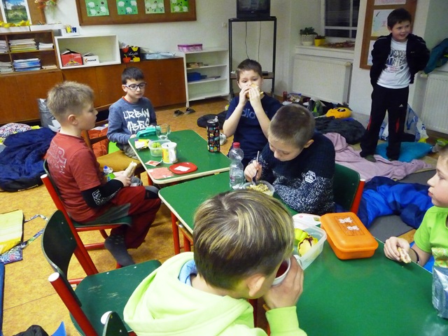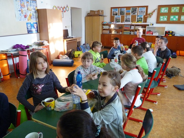 No a ráno jsme už jen uklidili své pelíšky, posnídali a čekali na rodiče. Ještě jedno překvapení na nás čekalo – naše paní školnice p.Lužná nám ke snídani upekla vynikající bábovku. Moc děkujeme :-)