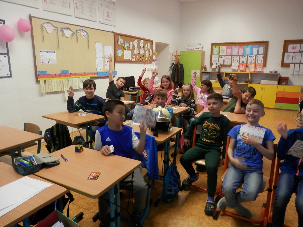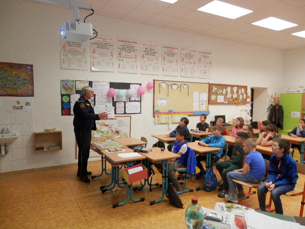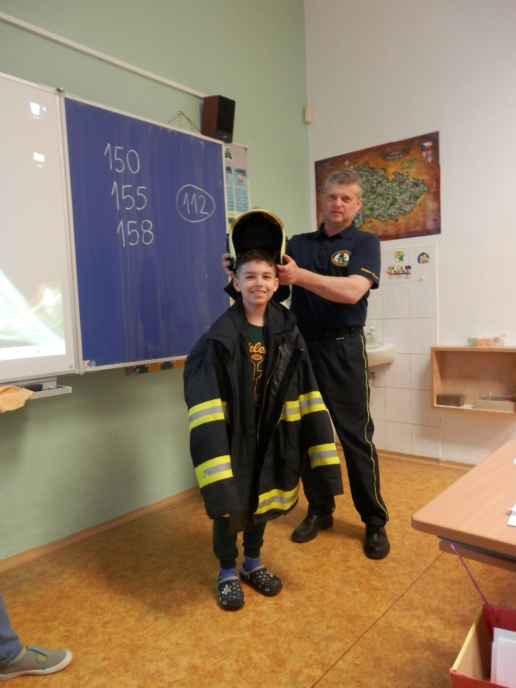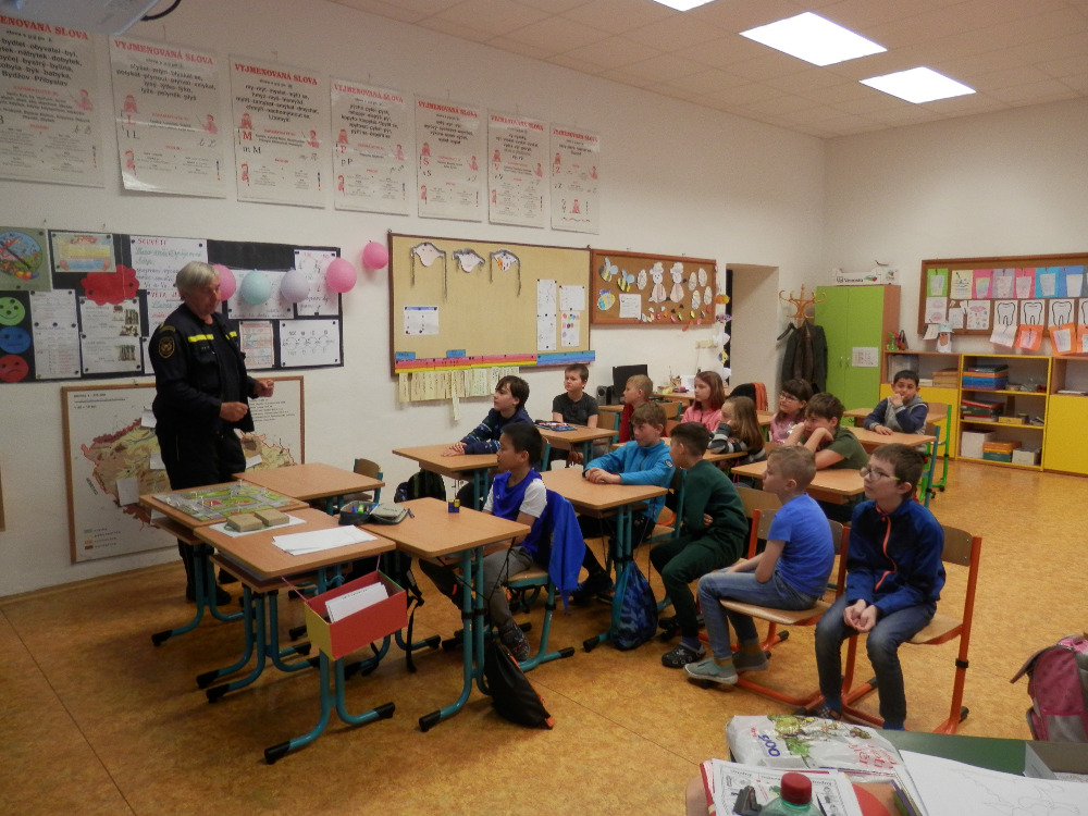 Beseda 2. a 4. třídy s hasiči z Konice a plnění zajímavých úkolů.