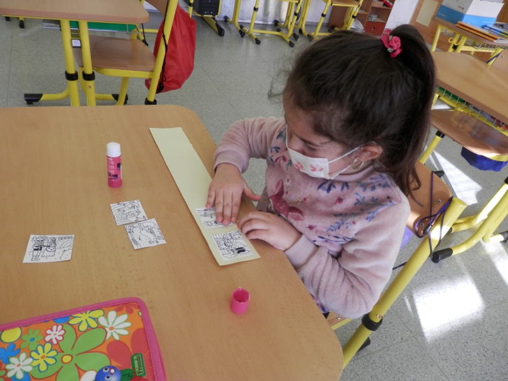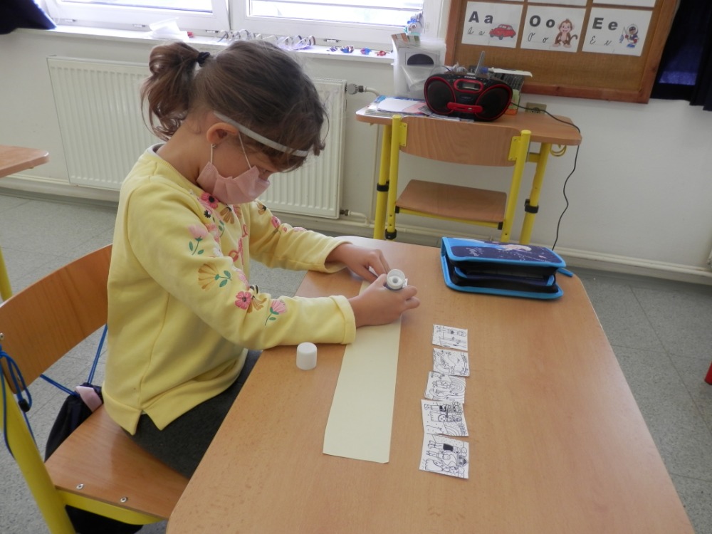 Cílem bylo rozvíjet komunikační dovednosti, uvědomit si posloupnost děje podle obrázkové osnovy.
